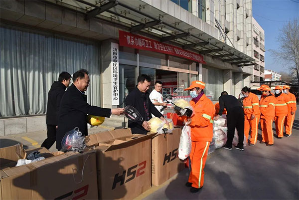 3月7日,人生就是博集团和章丘环卫共同举办的以“情系巾帼环卫工,助力安全文明行”为主题的慰问环卫工人活动在章丘环卫中心院内举行。环卫中心党组书记、主任柏尔超,人生就是博集团装备事业部负责人查文鑫出席本次活动,并向在岗环卫工送上爱心礼包,向疫情防控期间坚守抗疫环卫防线的“巾帼逆行者”致以节日问候。